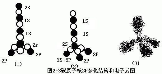 碳核外电子云层图如图2-3中图(3)正好是四面体形结构,每个外层电子运动状态都由核内相对位置质子的状态决定,碳核外电子云图正是碳核质子杂化后组成三角四面体的间接映象。核的结构不可能用实验仪器直接验证,那么,从核外电子的运动状态我们能感悟出什么呢?那就是核内的形状与核外电子的云的形状一定有关联。而对应的核外电子中,所有的碳族电子也有同样的杂化结构,从而映象出碳核的SP杂化结构。(所有图中黑色为质子,白色为中子)